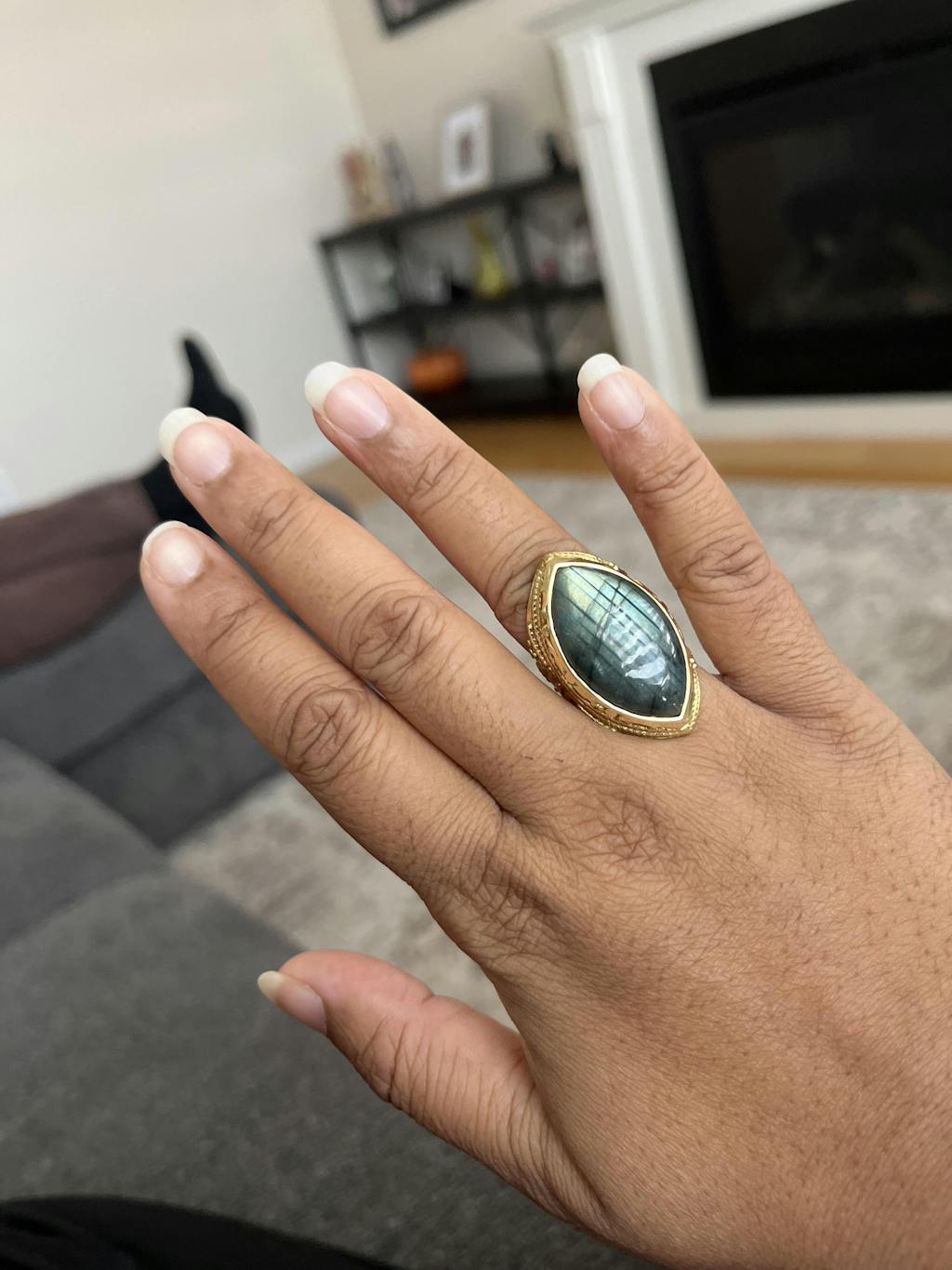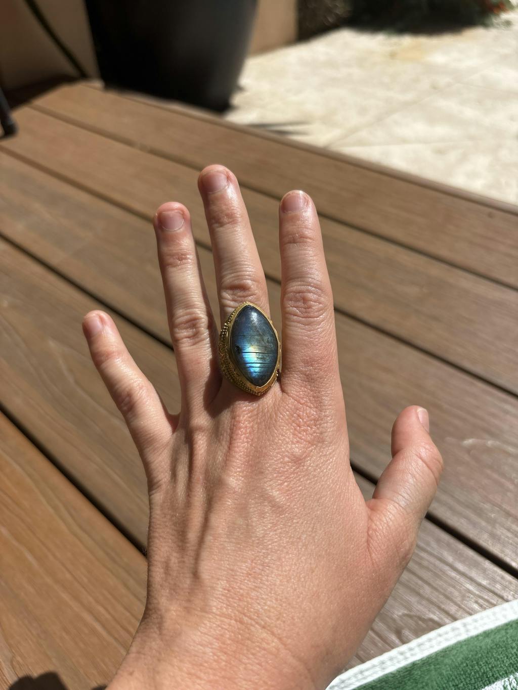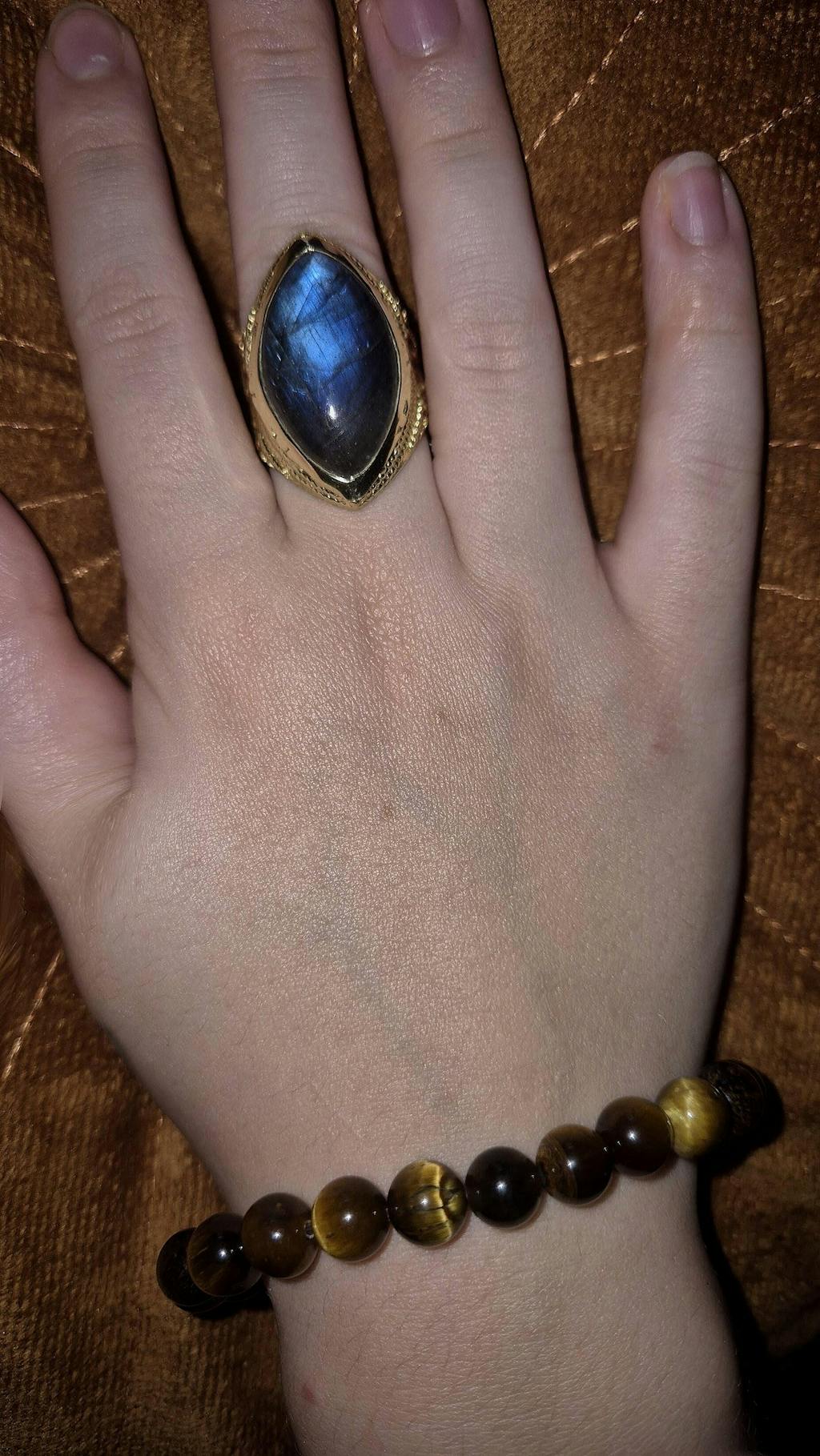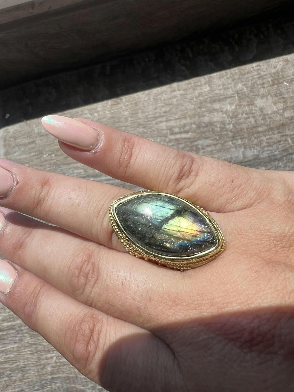The Aryia Ring is a truly special piece of jewelry imbued with the noble qualities of its Sanskrit name. Crafted with a stunning Labradorite crystal, this stone is known for its powerful ability to enhance intuition and provide mental clarity. Celebrated for its transformative properties and mystical energy, the Aryia Ring perfectly blends elegance and spiritual meaning, making it a unique addition to any jewelry collection.