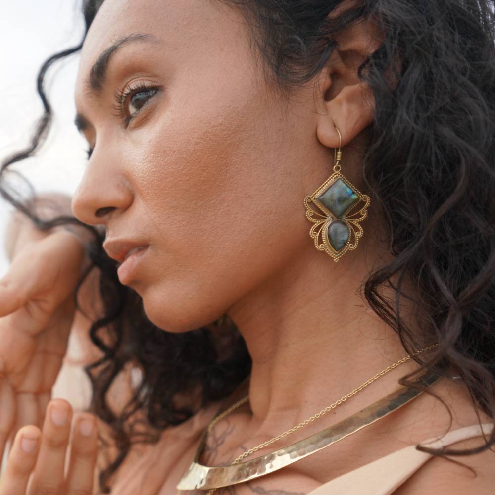 We use pure brass, 14k gold-plated brass, and 925 certified sterling silver. All materials are ethically sourced, fair trade, and 100% nickel-free to prevent skin irritation. Our artisans handcraft each piece with love and intention.