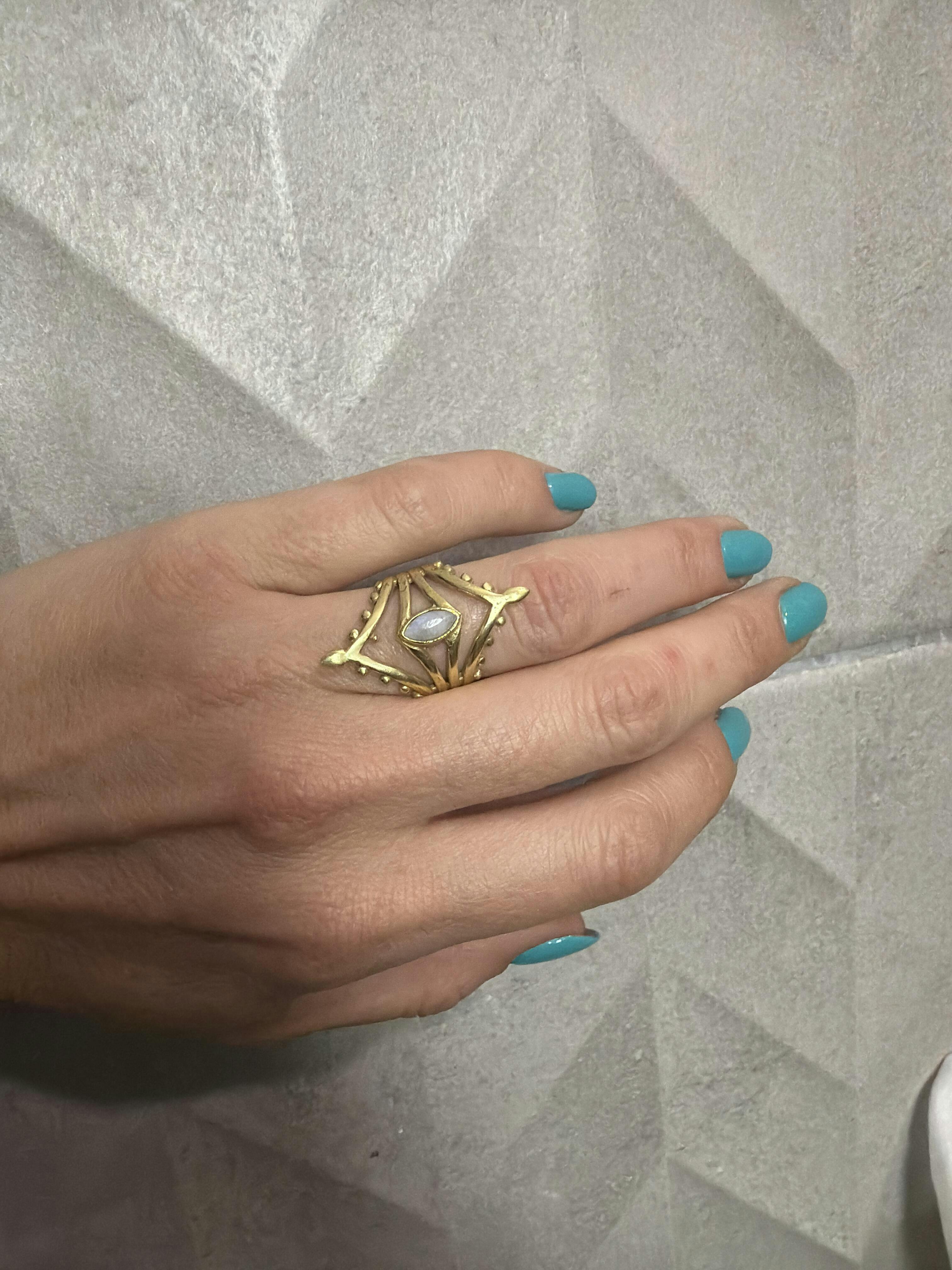 Inspired by Goddess Diana, the protector of women and the wild, this ring embodies strength, intuition, and freedom. At its heart, a luminous moonstone - the Stone of Balance - promotes emotional harmony, inner peace, and new beginnings. Like the moon, it reminds you to embrace your cycles, trust your intuition, and move through life with grace and confidence.
