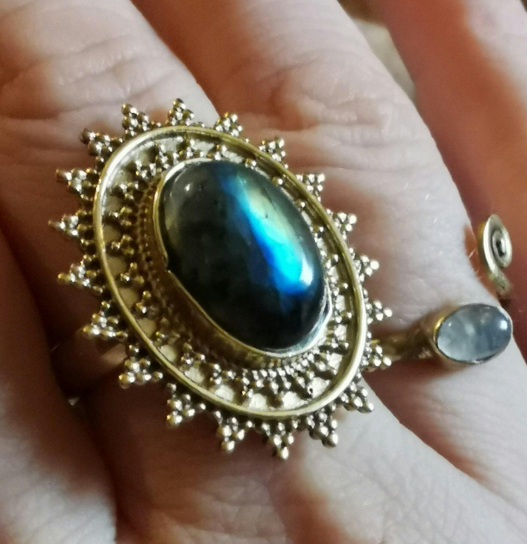 I had ordered from the site 2 of the adorable lotus rings in gold & silver (matching ones for my mother & I) along w/ the brass moonstone earrings for my mothers bday/ I saw the Helena Silver Ring couple wks back & sent the link to my bf saying I liked it a lot (which I have done so many times before & nothing really comes out of it) & today he comes around with the ring on display in the open box & says “hey didn’t you say you liked this?” It took me a second to realize & I started to tear up at how sweet & thoughtful along with how beautiful it is! The shimmer on the moonstone is out of this world magickal as well! Beautifully crafted & something I plan on keeping & wearing forever!